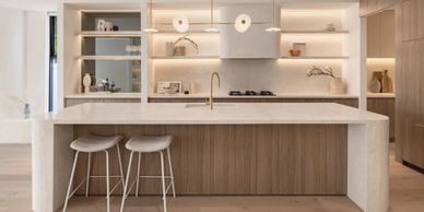 A modernist approach with a minimal palette of materials and colours; consisting of black, white and American Oak accents and reveals throughout. Enlisting local Architect Karmatecture.